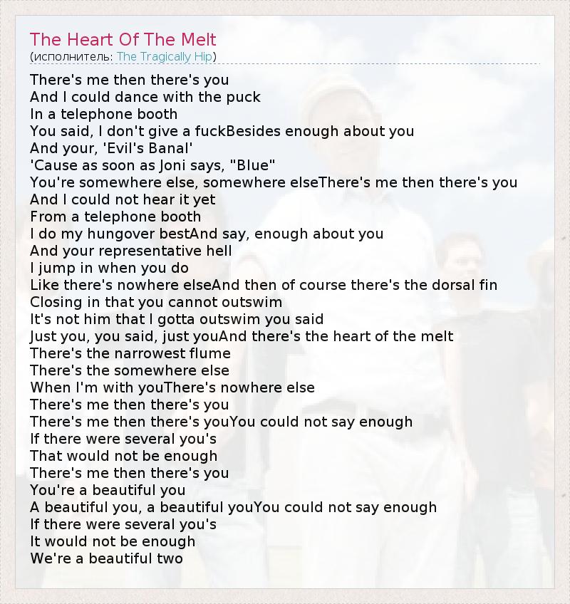 Just you, you said, just youAnd there's the heart of the melt