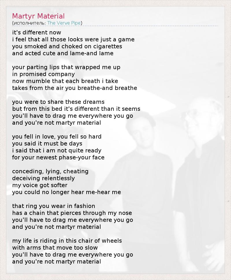 А как ты думаешь, о чем песня "Martyr Material" ?
