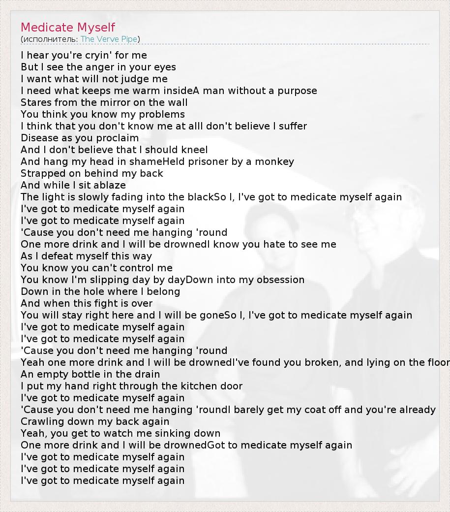 А как ты думаешь, о чем песня "Medicate Myself" ?