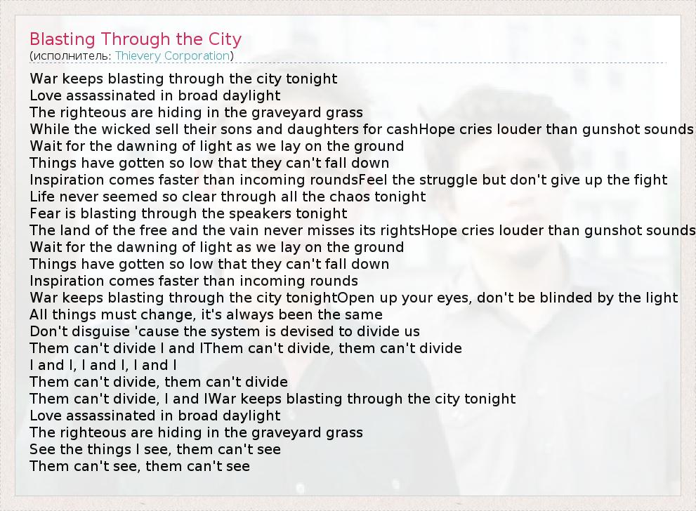 А как ты думаешь, о чем песня "Blasting Through the City" ?