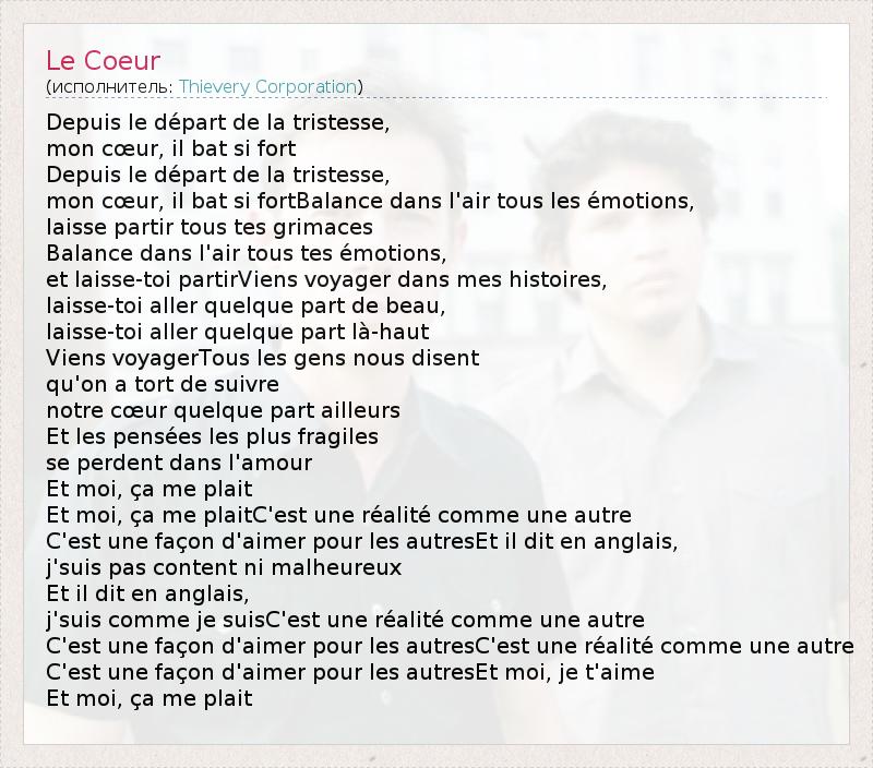 А как ты думаешь, о чем песня "Le Coeur" ?