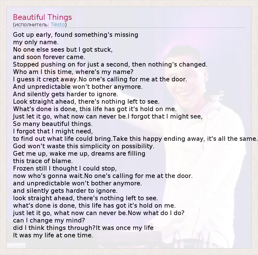 А как ты думаешь, о чем песня "Beautiful Things" ?