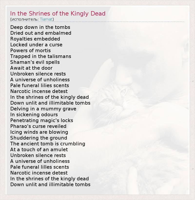А как ты думаешь, о чем песня "In the Shrines of the Kingly Dead" ?