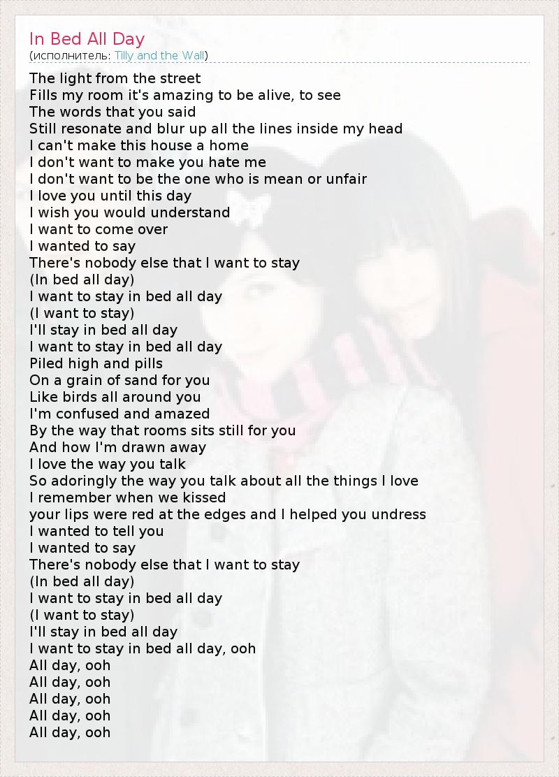 А как ты думаешь, о чем песня "In Bed All Day" ?