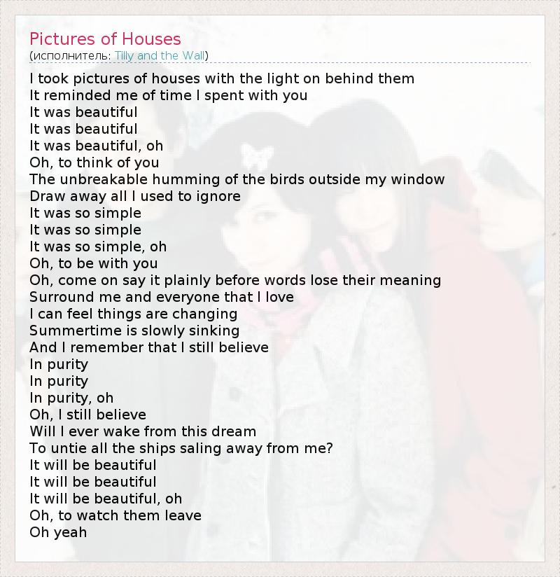 А как ты думаешь, о чем песня "Pictures of Houses" ?