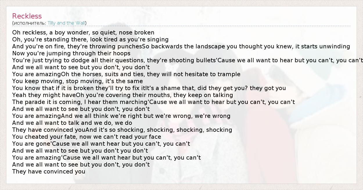 А как ты думаешь, о чем песня "Reckless" ?
