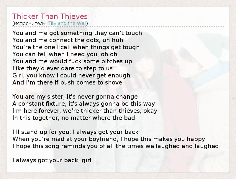 А как ты думаешь, о чем песня "Thicker Than Thieves" ?