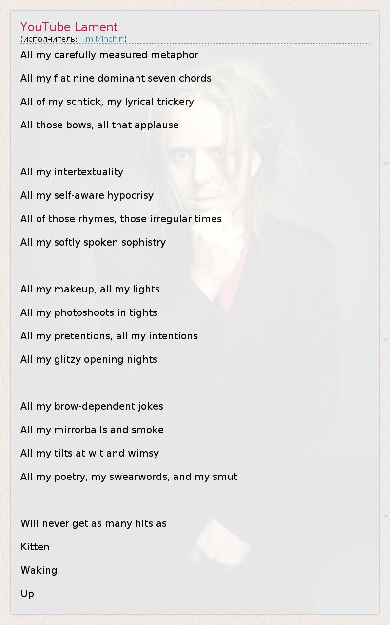 А как ты думаешь, о чем песня "YouTube Lament" ?
