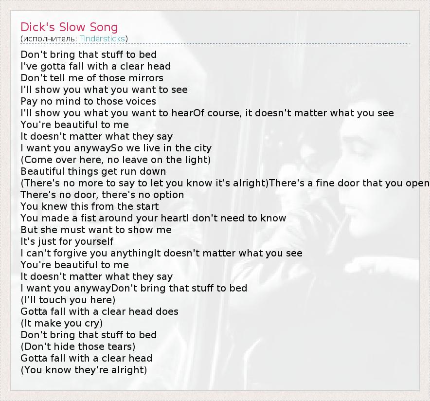 А как ты думаешь, о чем песня "Dick's Slow Song" ?