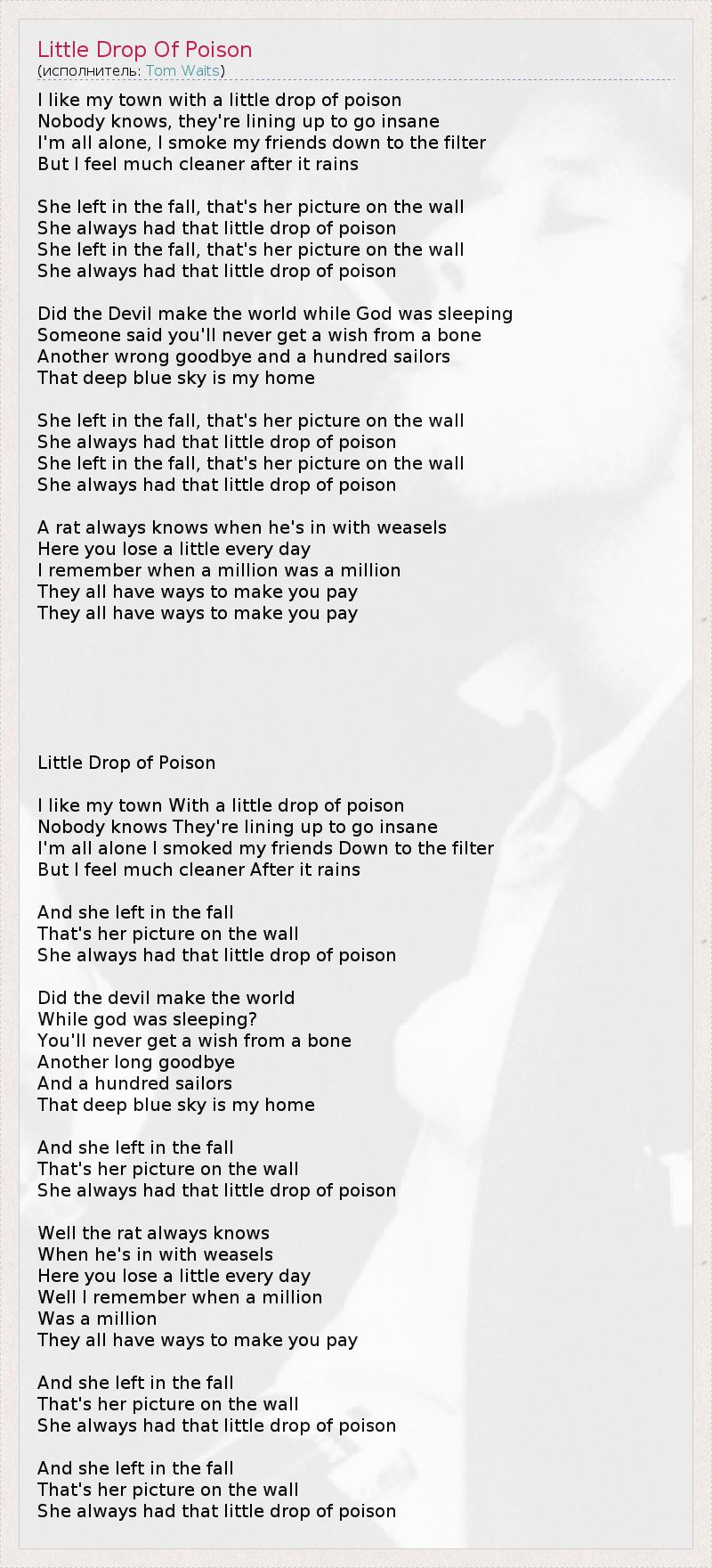 А как ты думаешь, о чем песня "Little Drop Of Poison" ?