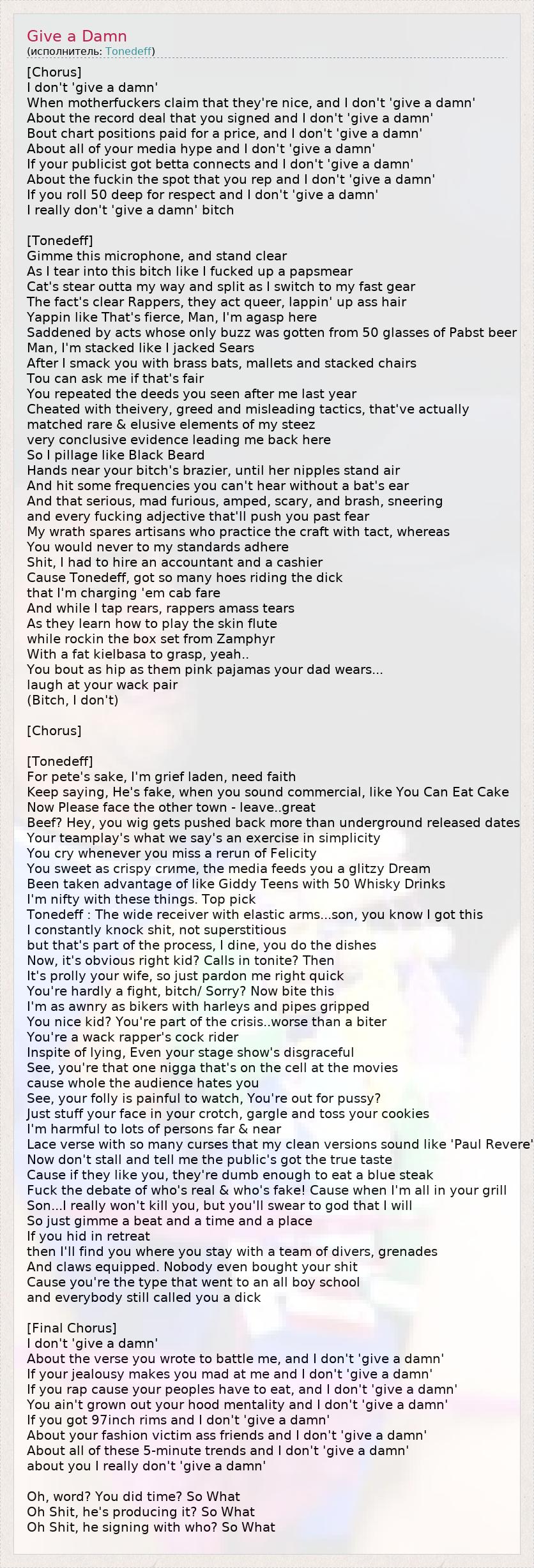 When motherfuckers claim that they're nice, and I don't 'give a damn'