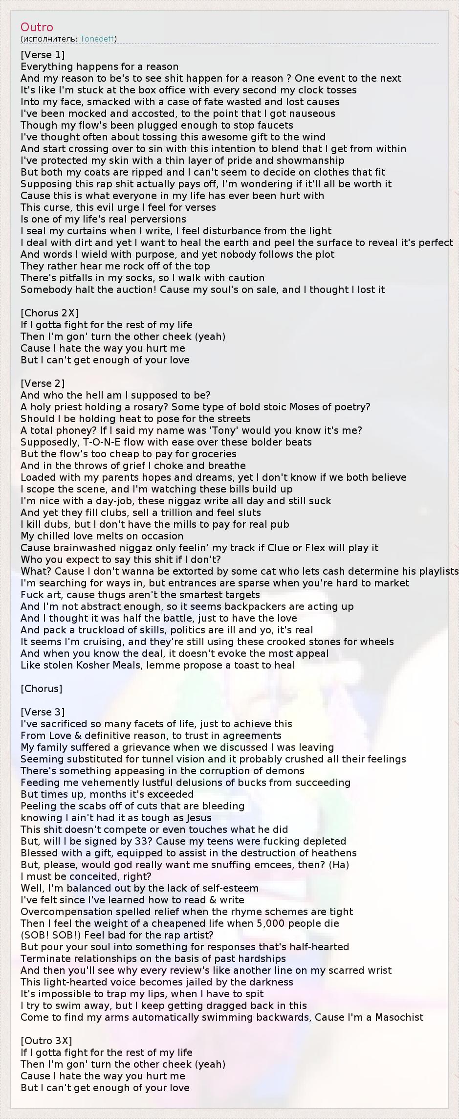 Это интересно:Tonedeff (born Anthony Rojas on December 14, 1978) is an American rapper, producer, and singer-songwriter from Queens, New York City.Known for his breathless vocal performances, rapid-fire delivery, which is alleged to be among the fastest in hip hop history at 13.5 syllables per second, he is said by critics as having "the best flows" of the current generation of emcees. Having developed a reputation as a self-sufficient artist who has been known to design his own album covers and edit his own videos, he is also known to sing and play piano on his tracks, as well as self-produce them.Tonedeff first gained national recognition on the underground hip hop scene after winning... продолжение