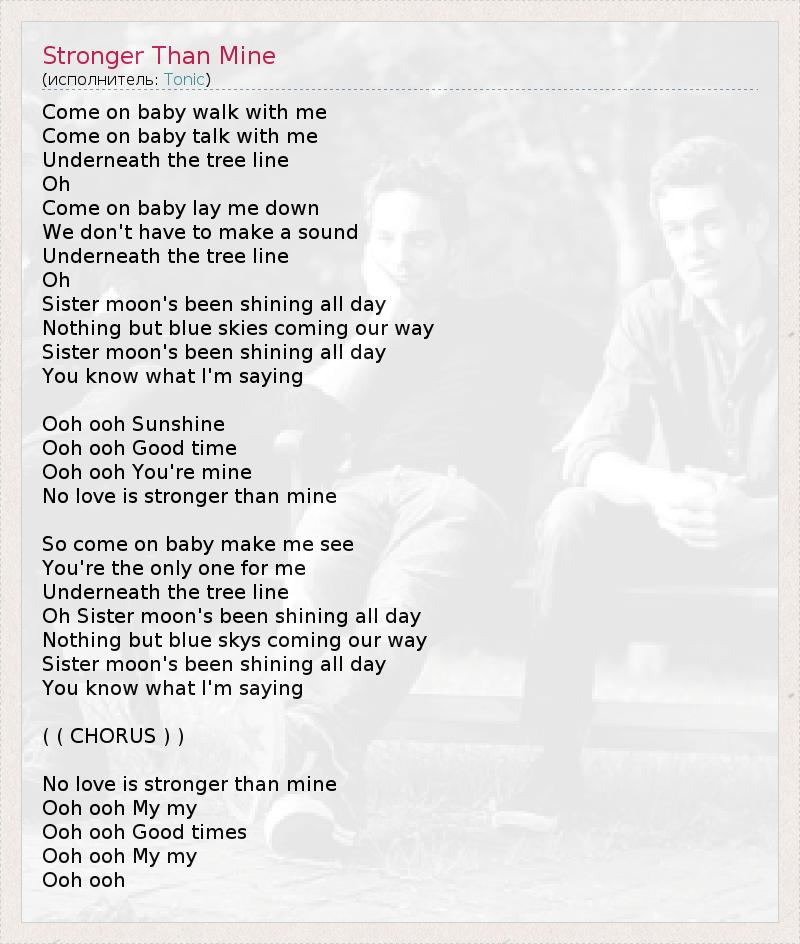 А как ты думаешь, о чем песня "Stronger Than Mine" ?