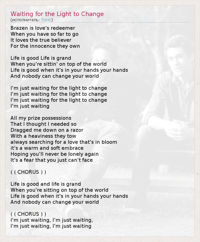 А как ты думаешь, о чем песня "Waiting for the Light to Change" ?