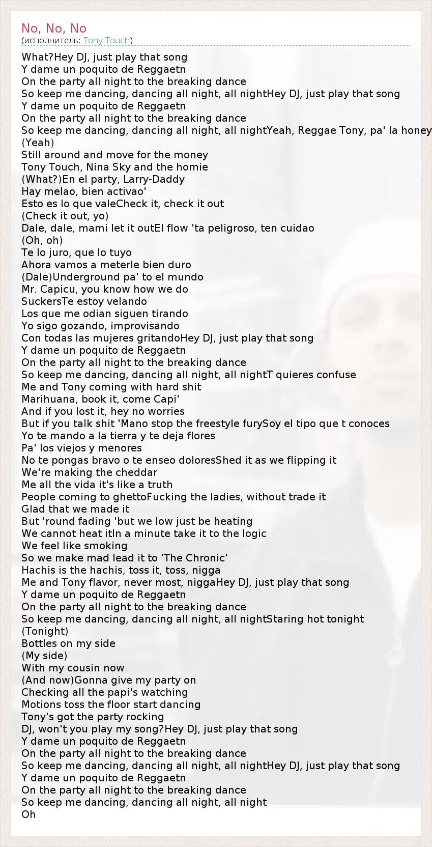 А как ты думаешь, о чем песня "No, No, No" ?