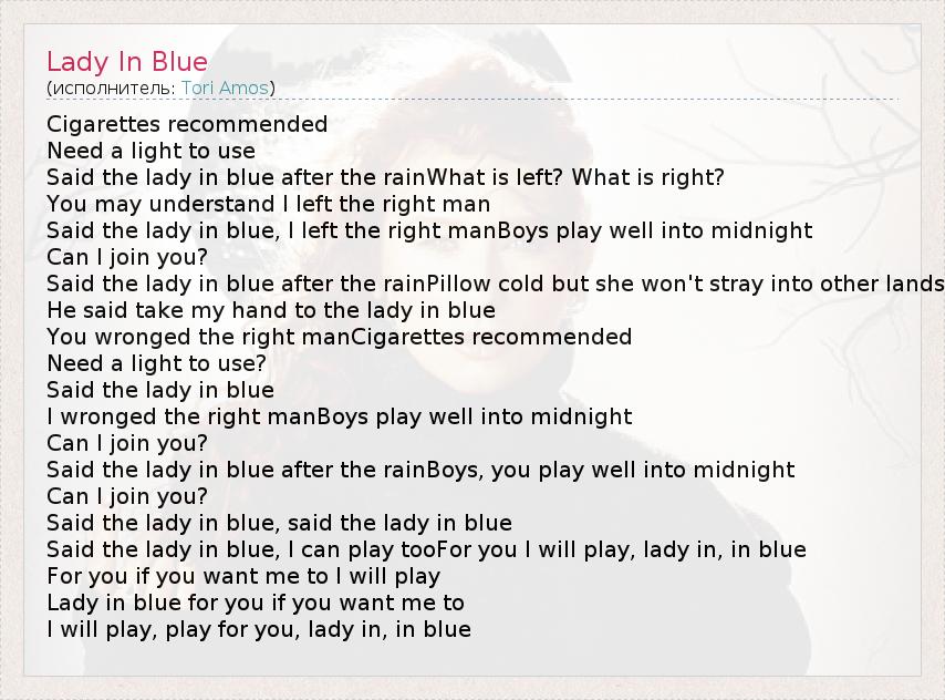 А как ты думаешь, о чем песня "Lady In Blue" ?