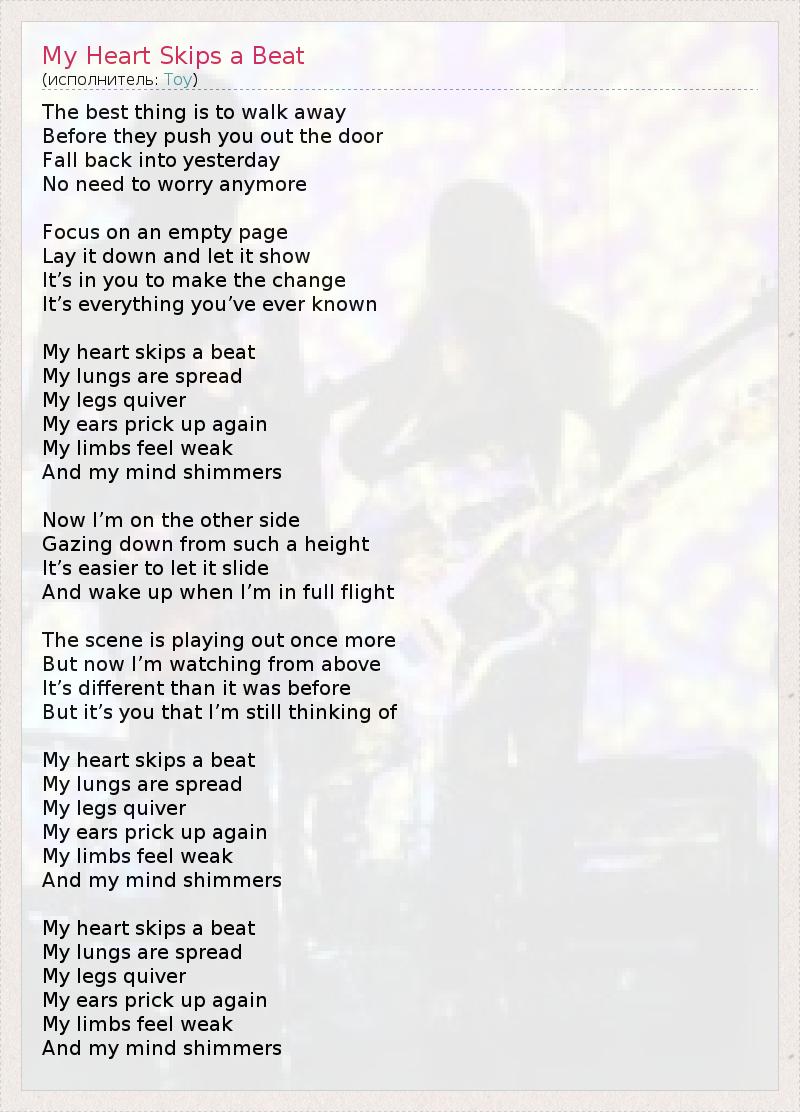 А как ты думаешь, о чем песня "My Heart Skips a Beat" ?