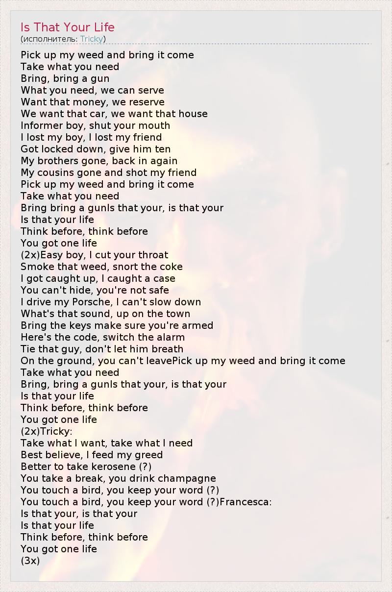А как ты думаешь, о чем песня "Is That Your Life" ?