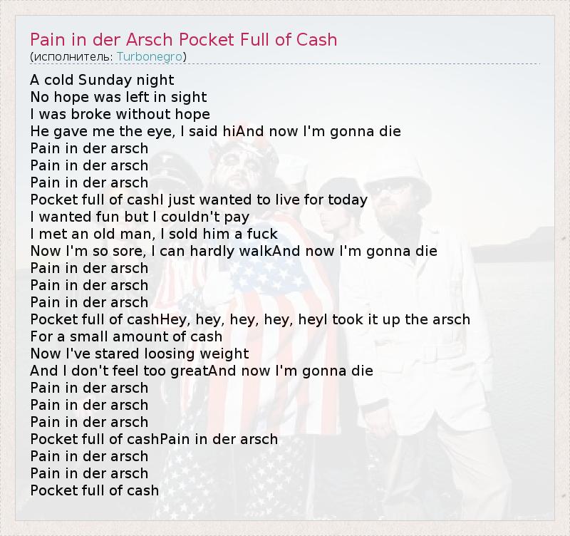 А как ты думаешь, о чем песня "Pain in der Arsch Pocket Full of Cash" ?