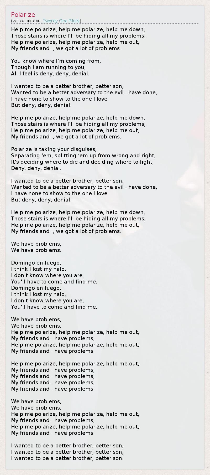 А как ты думаешь, о чем песня "Polarize" ?