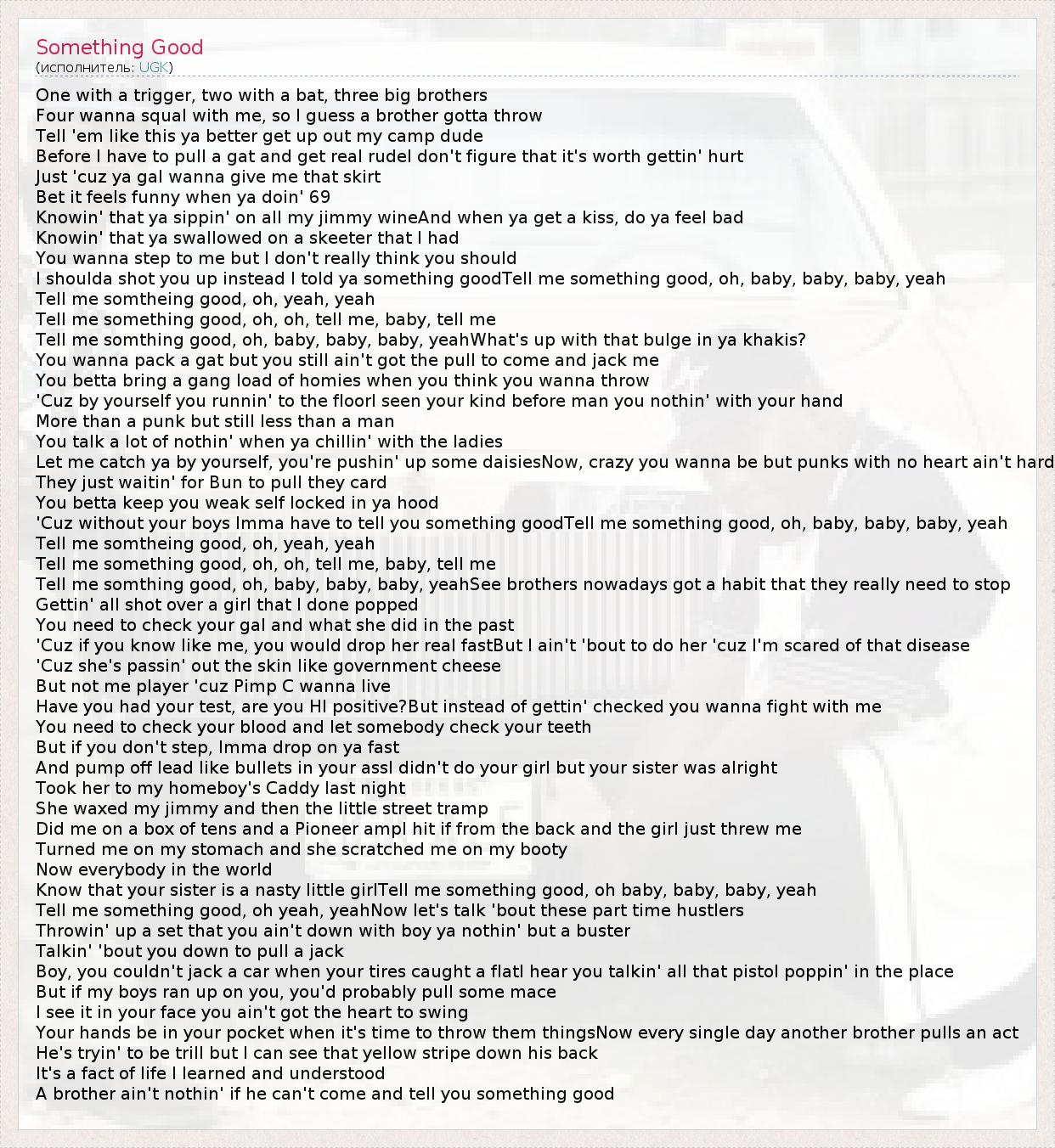 Know that your sister is a nasty little girlTell me something good, oh baby, baby, baby, yeah