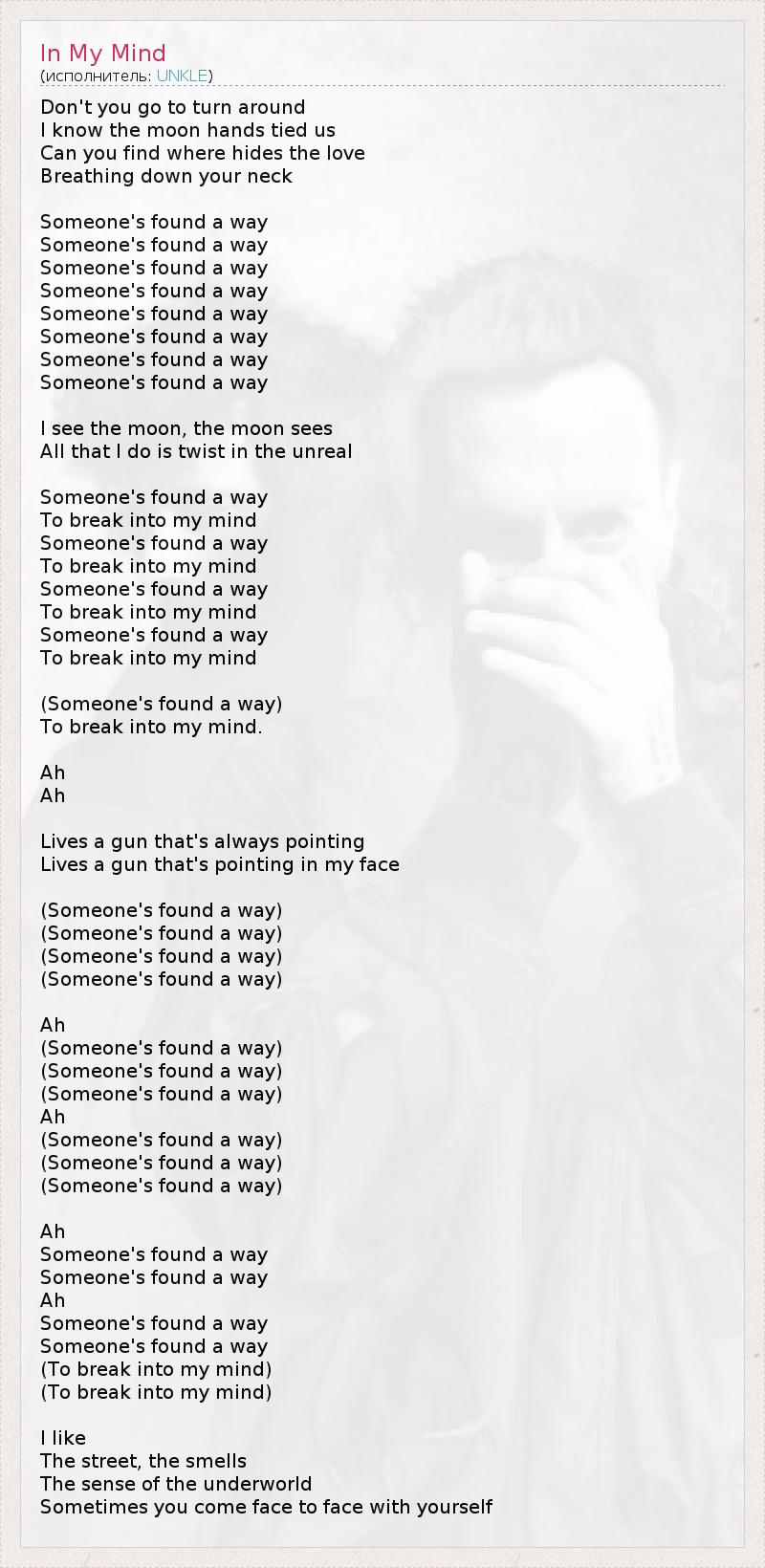 Это интересно:В те времена, когда биг-бит/Big Beat проявлялся только загадочным блеском в глазах Нормана Fatboy Slim Кука, очень много говорилось о трип-хопе. Британский родственник хип-хопа, подверженный частым сменам настроения — от плохого к депрессивному, стоял на краю танцпола в широких штанах, затягиваясь огромными косяками и рассказывая о том, как он зависал с Beastie... продолжение
