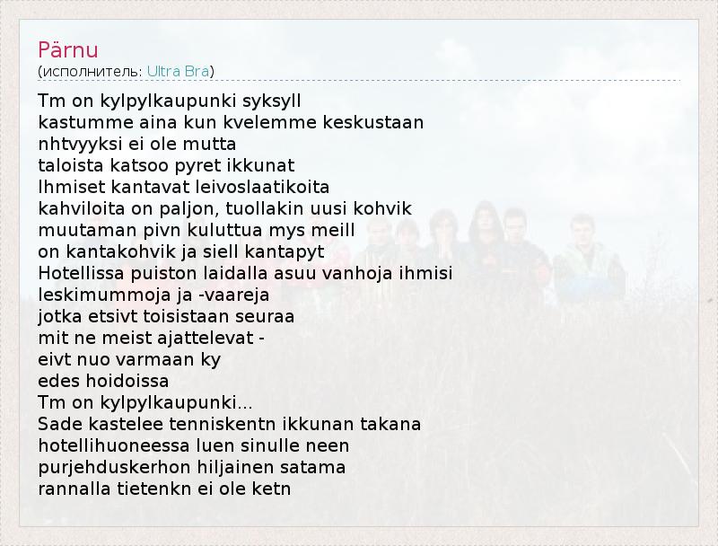 А как ты думаешь, о чем песня "Pärnu" ?