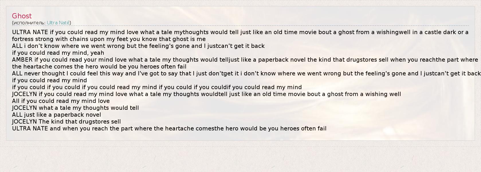 ULTRA NATE if you could read my mind love what a tale mythoughts would tell just like an old time movie bout a ghost from a wishingwell in a castle dark or a
