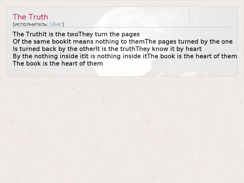 А как ты думаешь, о чем песня "The Truth" ?