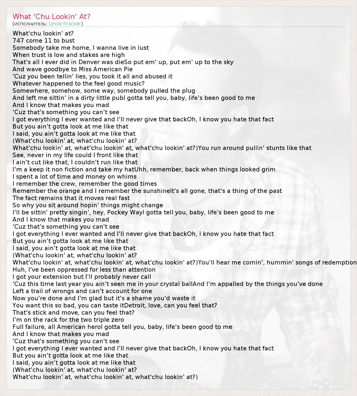 А как ты думаешь, о чем песня "What 'Chu Lookin' At?" ?