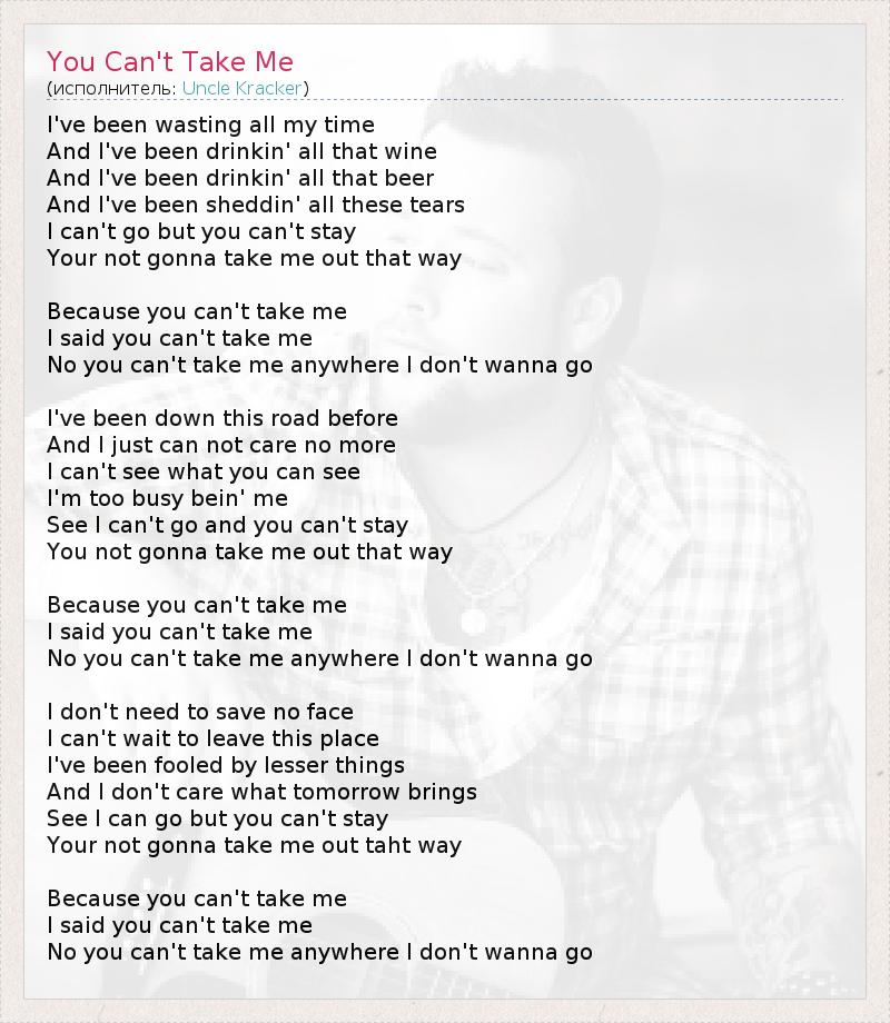 А как ты думаешь, о чем песня "You Can't Take Me" ?