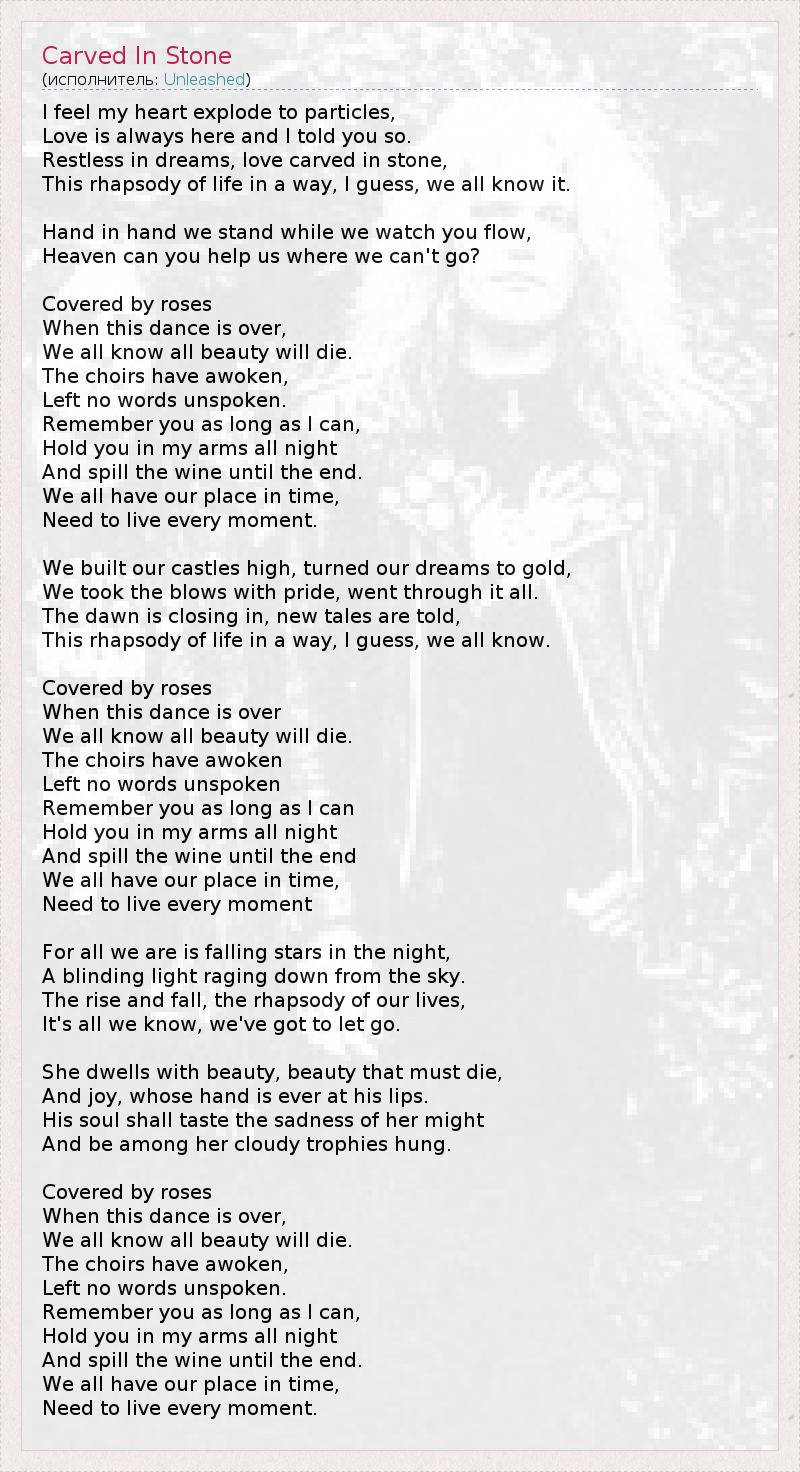 А как ты думаешь, о чем песня "Carved In Stone" ?