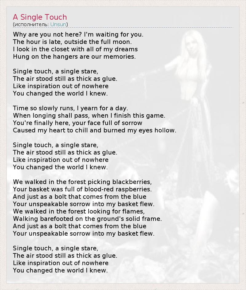 А как ты думаешь, о чем песня "A Single Touch" ?
