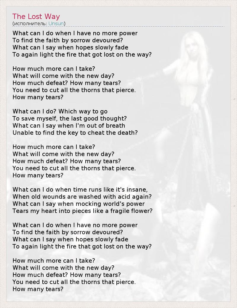 А как ты думаешь, о чем песня "The Lost Way" ?