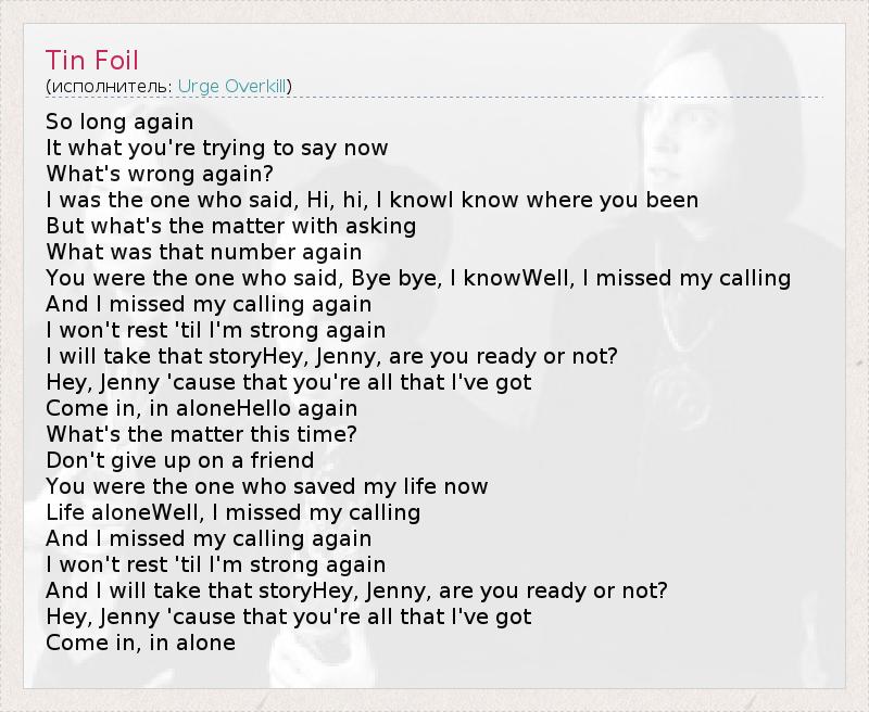 А как ты думаешь, о чем песня "Tin Foil" ?