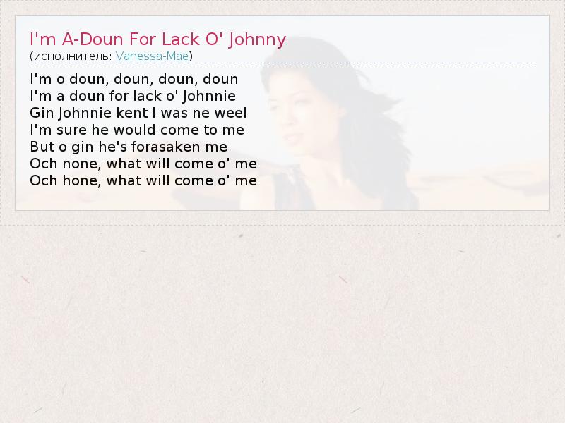 А как ты думаешь, о чем песня "I'm A-Doun For Lack O' Johnny" ?