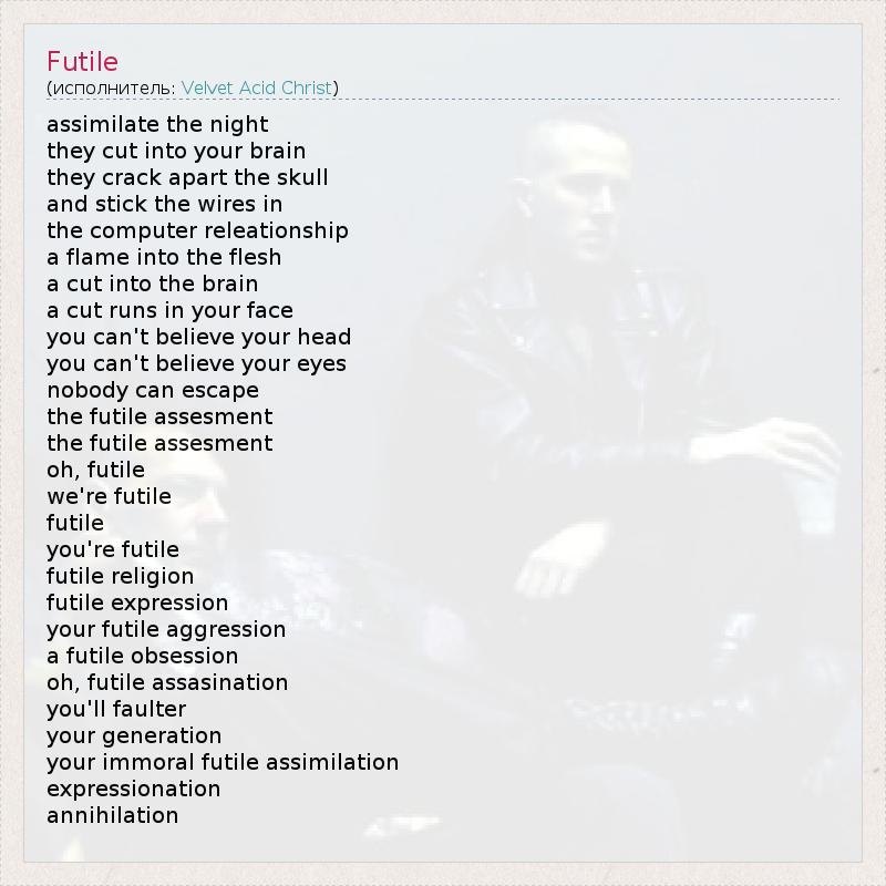 Это интересно:Velvet Acid Christ (сокращённо VAC) — музыкальная группа из США, играющая электро-индастриал. Основана в 1990 году в Денвере, штат Колорадо. Лидер группы — Брайан Эриксон (Bryan Erickson). Совместив разные стили и направления в музыке (EBM, industrial, trip-hop, gothic,... продолжение