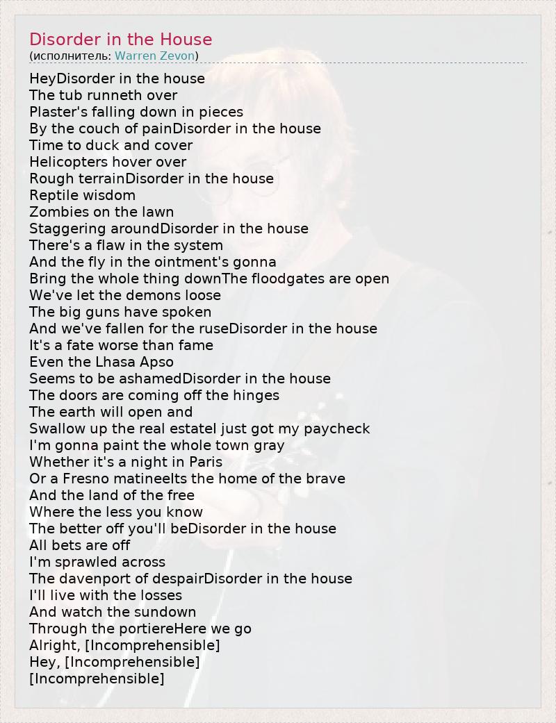 А как ты думаешь, о чем песня "Disorder in the House" ?