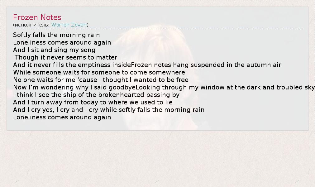 А как ты думаешь, о чем песня "Frozen Notes" ?