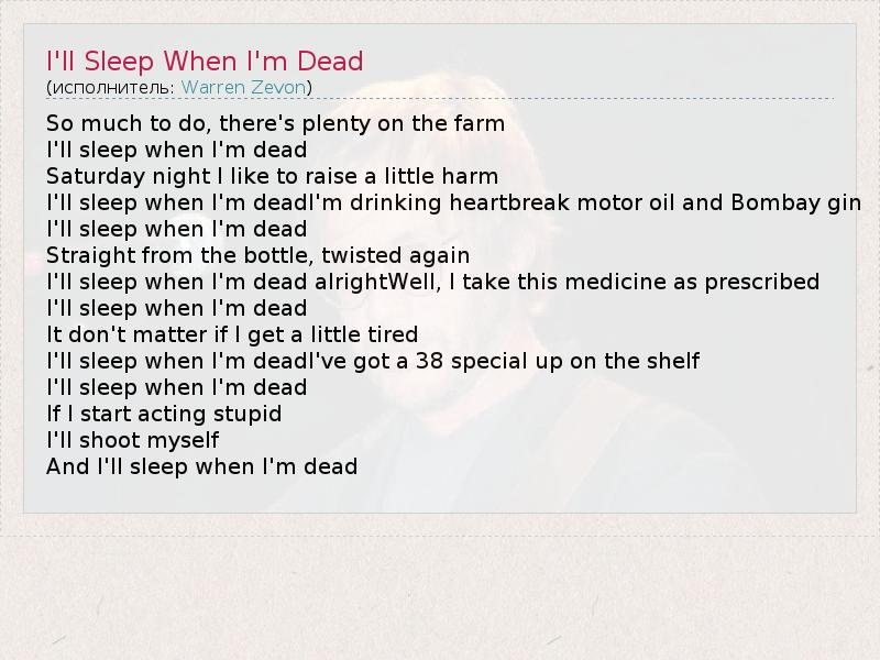 А как ты думаешь, о чем песня "I'll Sleep When I'm Dead" ?