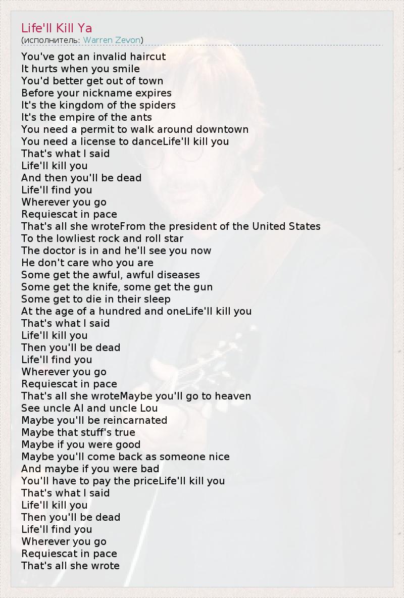 А как ты думаешь, о чем песня "Life'll Kill Ya" ?
