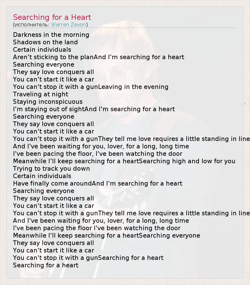 А как ты думаешь, о чем песня "Searching for a Heart" ?