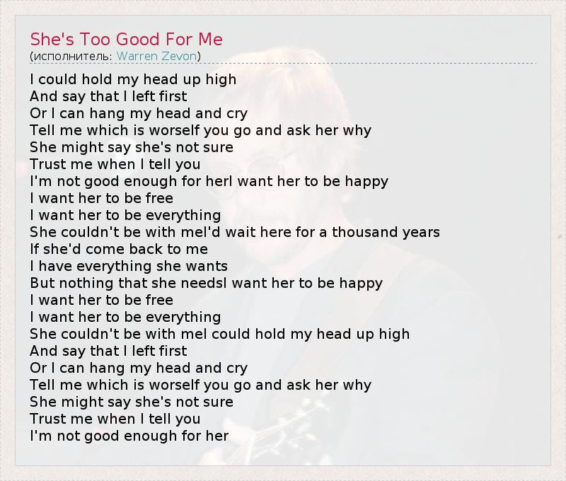 А как ты думаешь, о чем песня "She's Too Good For Me" ?