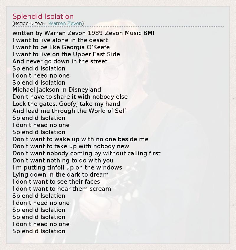 А как ты думаешь, о чем песня "Splendid Isolation" ?