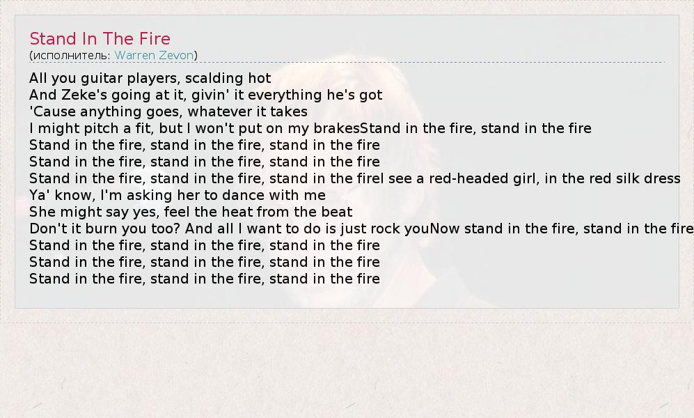 А как ты думаешь, о чем песня "Stand In The Fire" ?