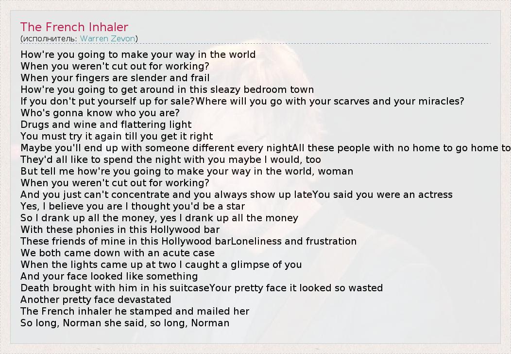 А как ты думаешь, о чем песня "The French Inhaler" ?