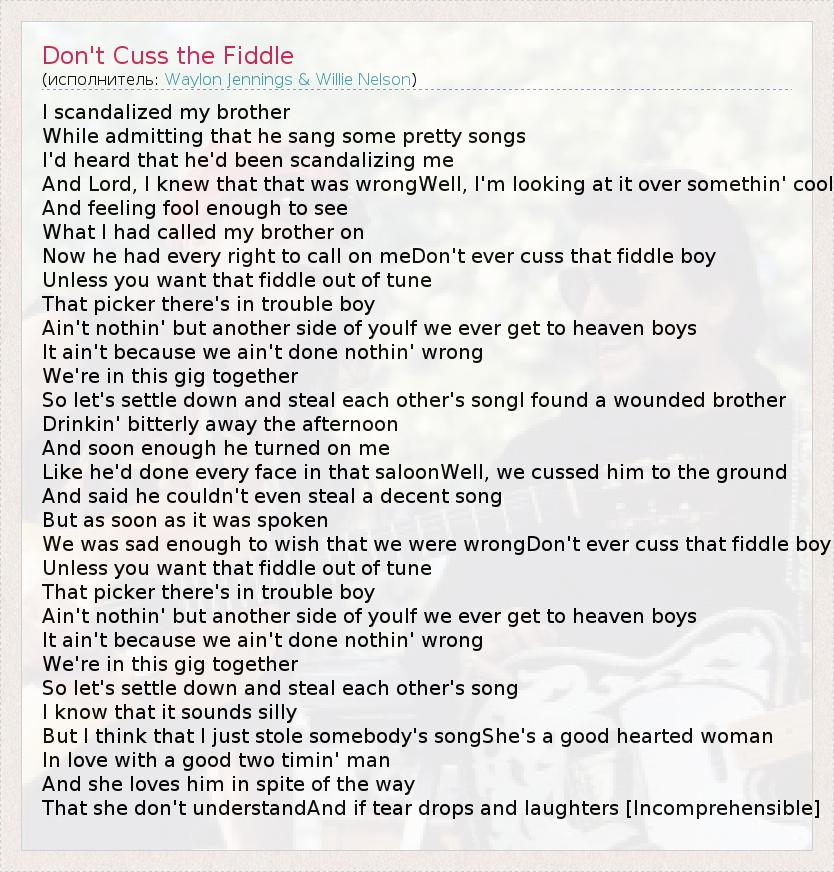 А как ты думаешь, о чем песня "Don't Cuss the Fiddle" ?