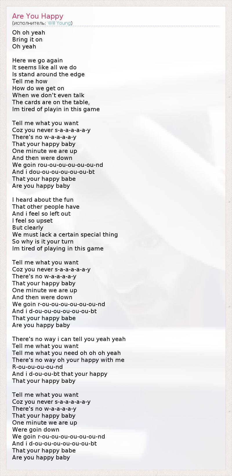 А как ты думаешь, о чем песня "Are You Happy" ?