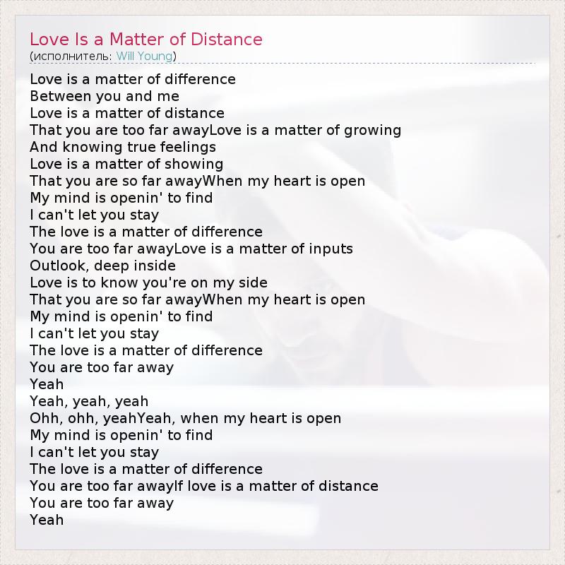 А как ты думаешь, о чем песня "Love Is a Matter of Distance" ?