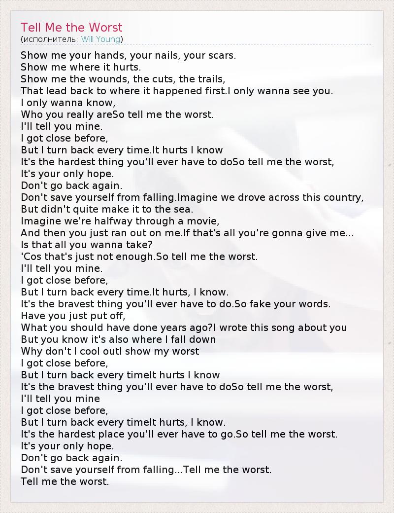 А как ты думаешь, о чем песня "Tell Me the Worst" ?